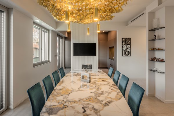 Decoración mural con paneles de pared, losetas, rosetones y guardasillas para imprimir un toque moderno a su interior.
