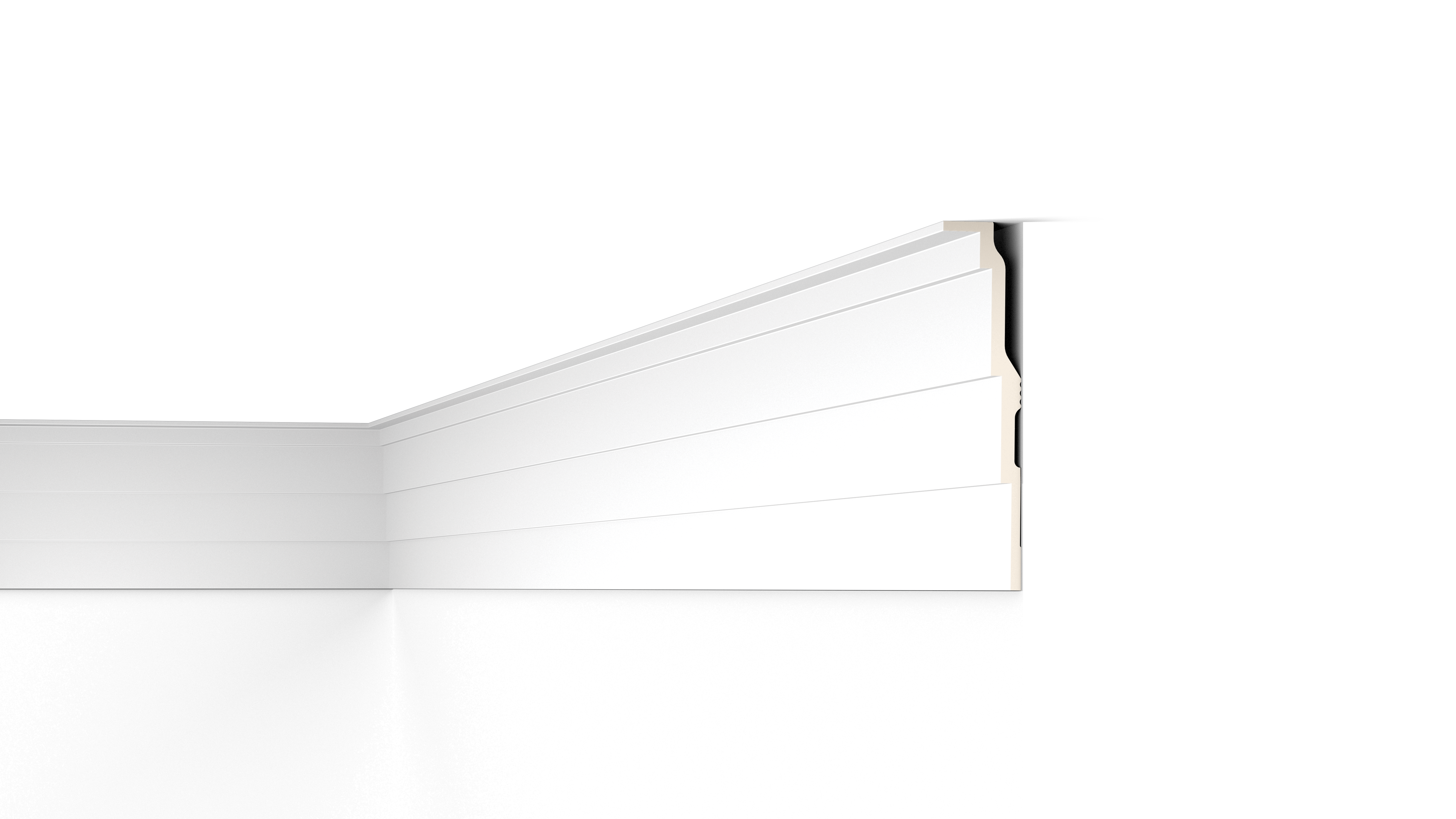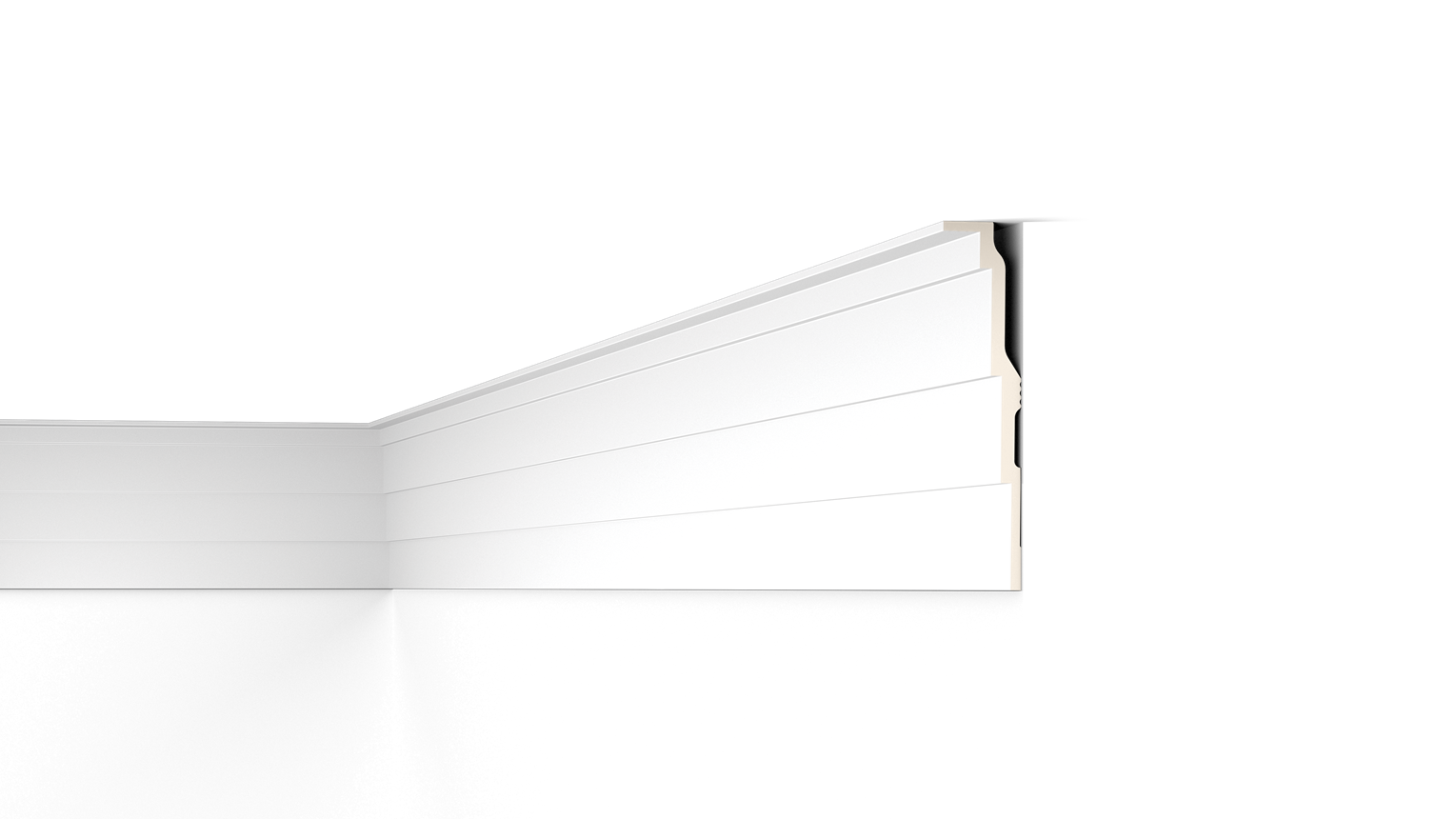 La cornisa AD21 ARSTYL® puede instalarse tanto en la pared como en el techo. La suave geometría escalonada de su diseño ofrece un aporte extra de carácter a cualquier estancia, dotándola a su vez de dimensión y perspectiva. La AD21 es tan sencilla como elegante y muy versátil en diversos estilos de diseño interior. Puede utilizarse también como cortinero con la ayuda de una fijación mecánica a techo.