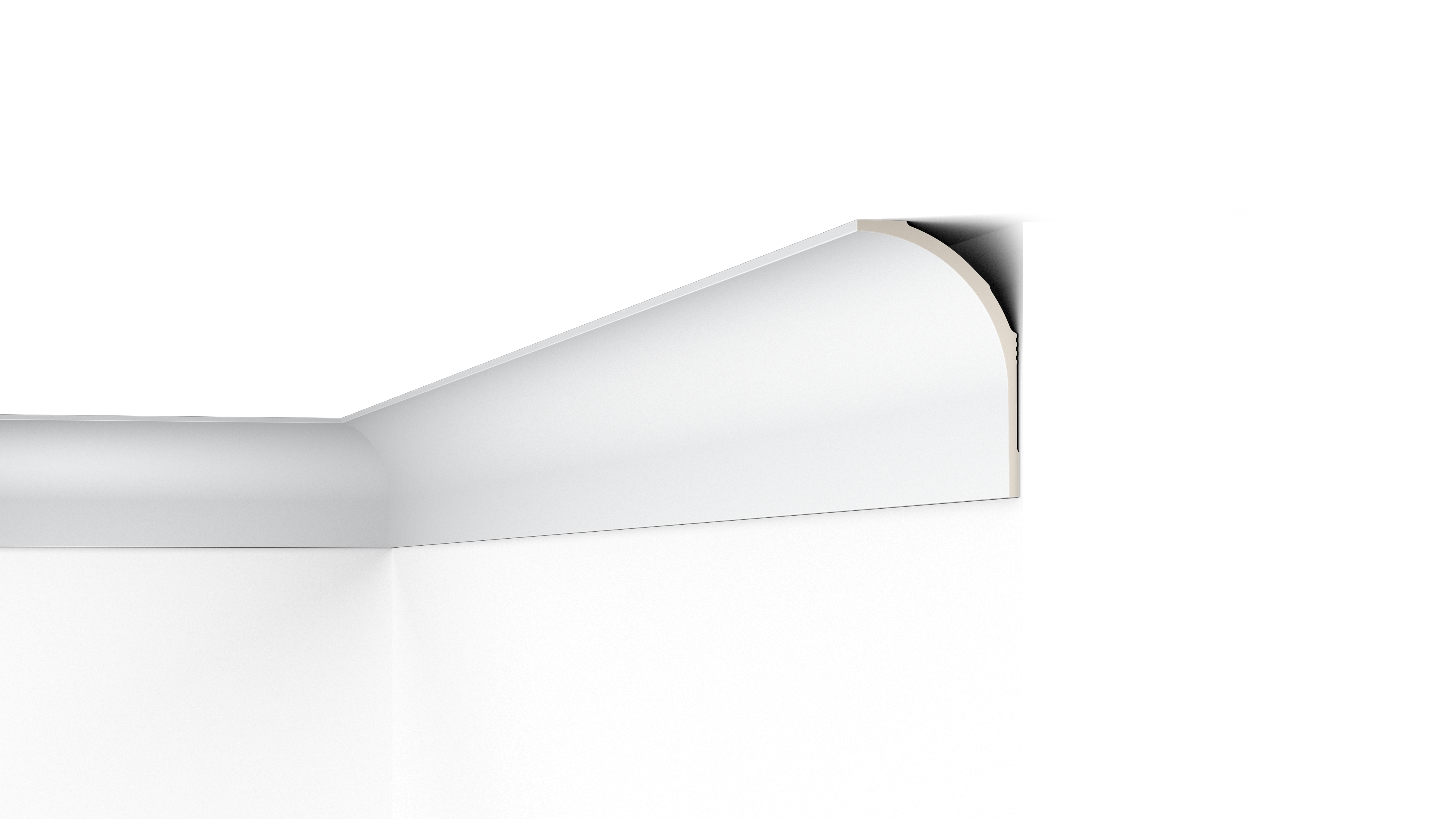 La cornisa AD23 ARSTYL® resulta una excelente elección cuando se desea un diseño interior contemporáneo y atemporal. Su austero diseño asimétrico de estilo modernista puede ser utilizado en dos direcciones dependiendo del efecto deseado. Sitúe su parte más amplia en el techo para aumentar visualmente el ancho de la cornisa o en la dirección contraria para que la habitación parezca más alta. La AD23 se usa a menudo en hoteles y restaurantes a tal efecto. También puede utilizarse para añadir sistemas LED de iluminación indirecta utilizando la pinza NMC LED.