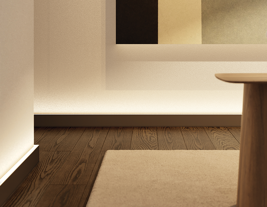 Cornisas, guardasillas, zócalos y decoración mural que se combinan con la iluminación directa o indirecta para crear un ambiente