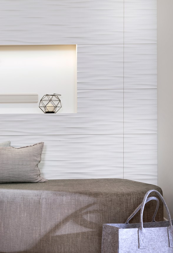 El diseñador Michaël Bihain se ha basado en la fluidez de las olas y en la propia naturaleza para crear, sobre un patrón de formas cúbicas, éste moderno elemento de decoración. Con el modelo de panel mural 3D WAVE de la colección ARSTYL® pueden crearse patrones personalizados en paredes para obtener espacios interiores completamente únicos. Pueden usarse tanto en pared como en techo y son aptos para todo tipo de espacios, tanto públicos como privados.