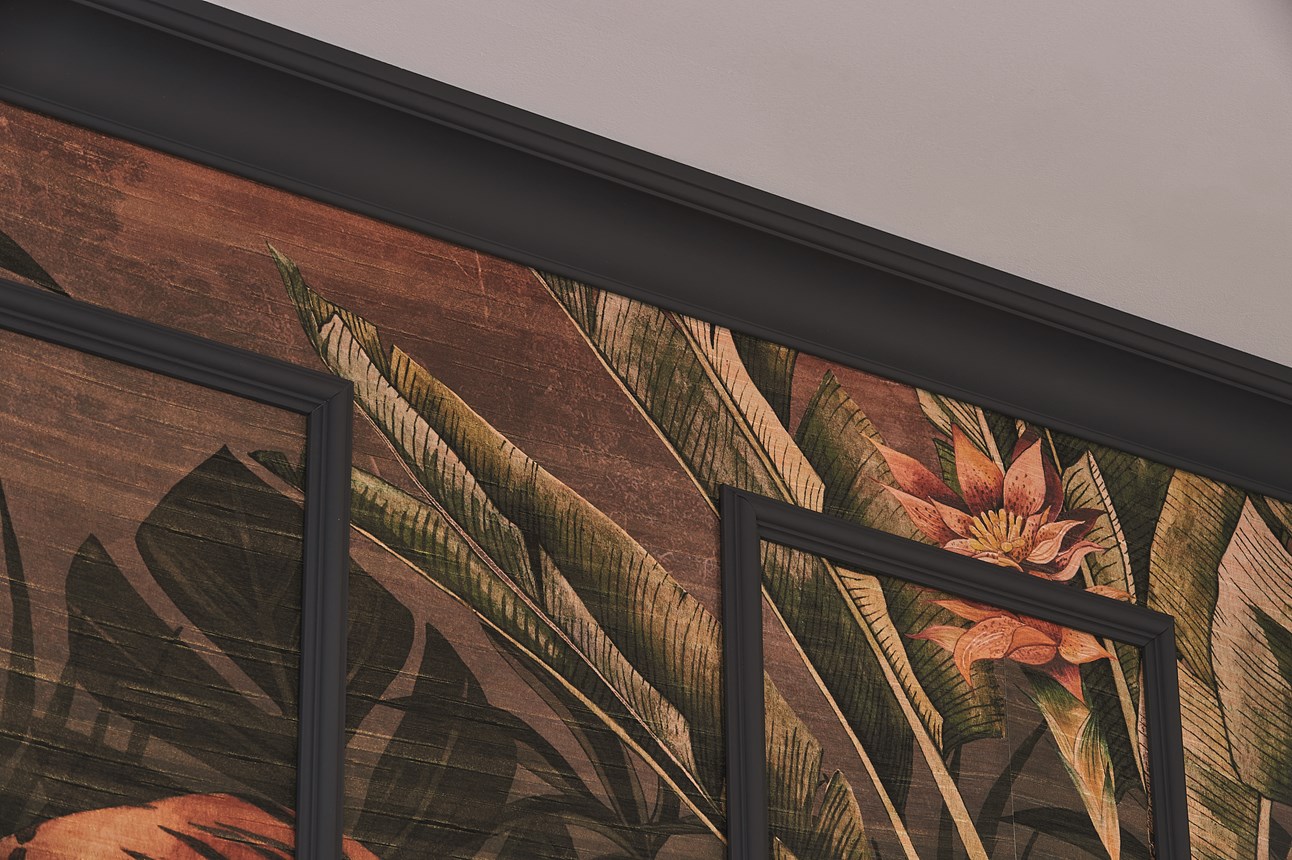 Decoración mural con paneles de pared, losetas, rosetones y guardasillas para imprimir un toque moderno a su interior.