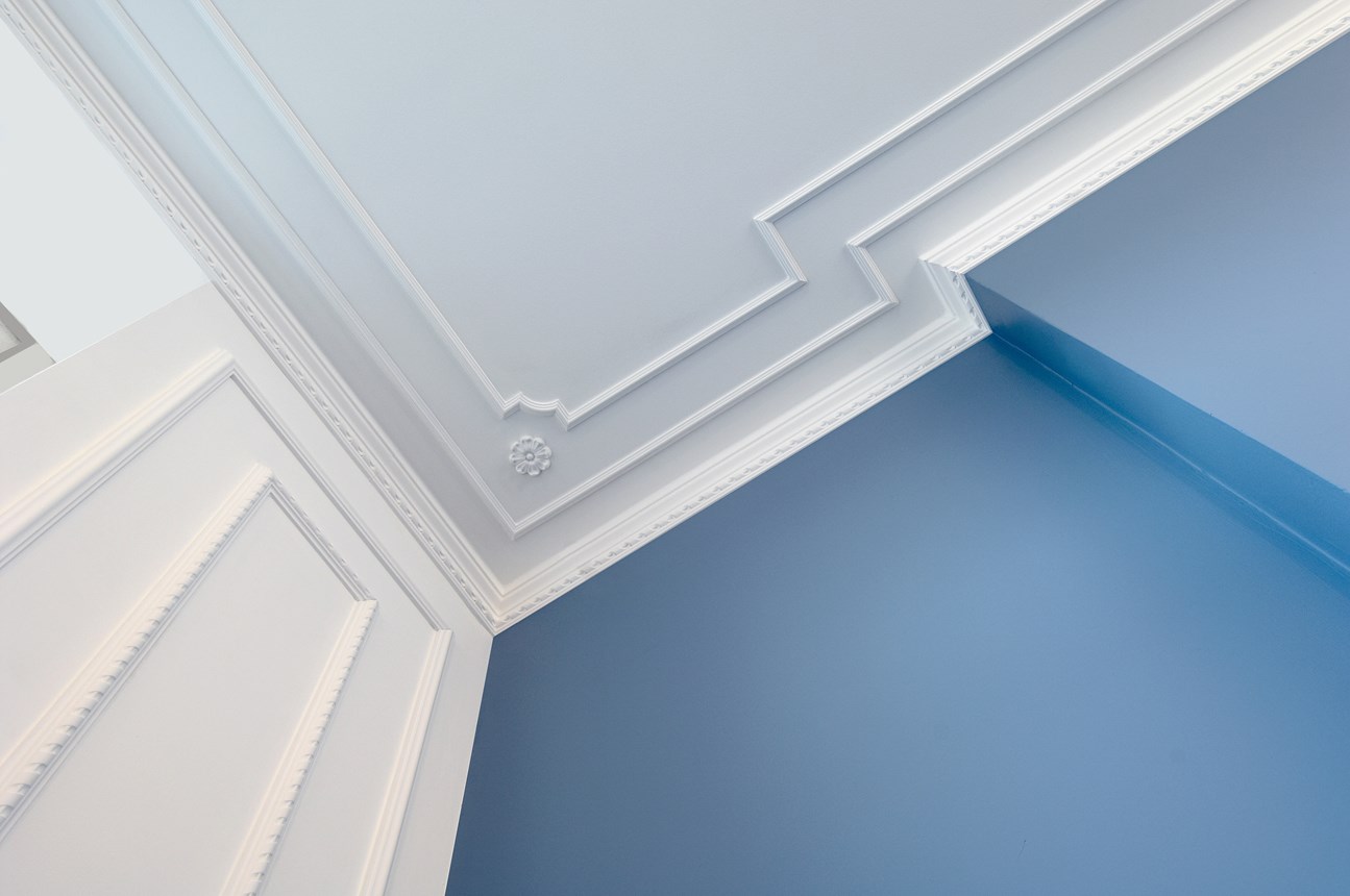 Cornisas, guardasillas, zócalos y decoración mural que se combinan con la iluminación directa o indirecta para crear un ambiente