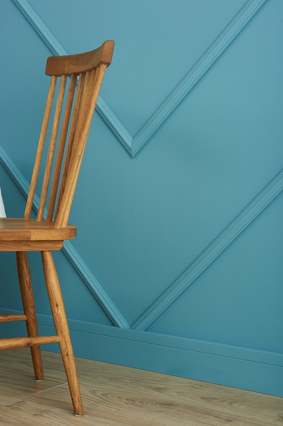 Decoração de parede com painéis de parede, revestimento, rosetas e rodapés para dar um toque moderno ao seu interior.