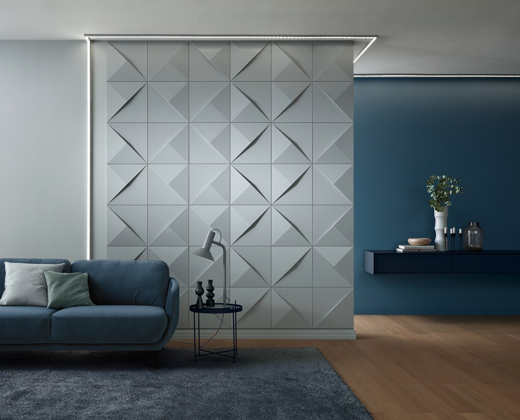 Decoração de parede com painéis de parede, revestimento, rosetas e rodapés para dar um toque moderno ao seu interior.